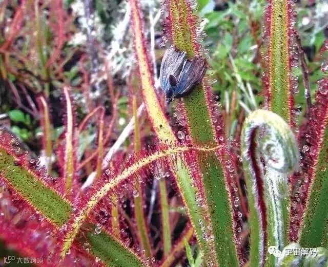 这一植物仅生长在巴西一座不知名的高山峰顶上,体型巨大,高达1.23米!以至于人们看到照片时会误认为在看普通茅膏菜的放大版。