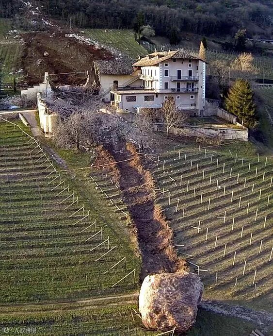 滚落的山石,把房子都撞破啦~