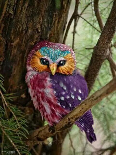 彩色猫头鹰,长得真好看