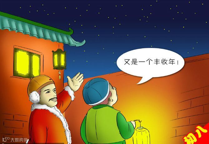 初八是谷日,传说是谷子的生日,也叫顺星节,传说是诸星下界的日子,天空星斗出得最全,如果这天天气晴朗,则预示这一年稻谷丰收,天阴则年歉。