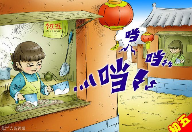 年初六,商店酒楼才正式开张营业,而且要大放鞭炮,不亚于除夕的境况。传说这一天最受欢迎的是当年满12岁的男孩,因为12是6的二倍,这叫六六大顺。这一天,每家每户要把节日积存的垃圾扔出去,这叫送穷鬼。