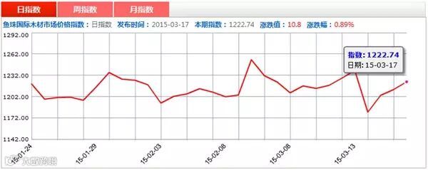 原木分类指数触底反弹,报收1409.59点,环比上涨79.26点,涨幅为5.96%。其中进口原木分类指数收于1412.00点,环比上涨6.96%。基本面上看,随着春节假期气氛的消散以及3—5月份传统旺季的到来,木材市场利好消息面占据主导位置,市场刚性需求放量,激活了市场人气,交易明显攀升,今日成交量较昨日上涨6.034%。另外,价格面上,受到多头利好因素的提振,市场贸易商心态多企稳,交收品种推涨意愿较强,其中如甘拔、菠萝格等,价格指数分别上升2.56%、1.09%。总体来看,目前进口原木市场信心较足,预计短线市场行情持续好转的可能性较大。截止收盘,进口原木代表品种甘拔报收2000元/立方米;菠萝格报收3720元/立方米。