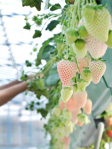 菠萝莓,外形像白草莓,但味道像菠萝,果肉为奶白色,表面均匀分布着小红点,与一般的草莓颜色恰好相反。