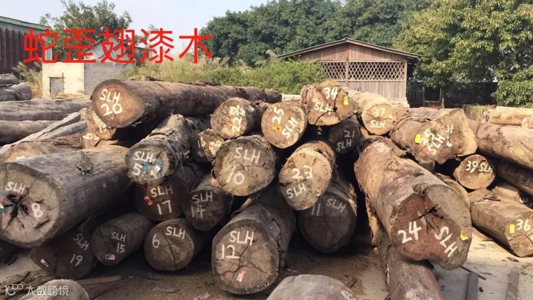 3、 蛇(木)歪翅漆木:木材散孔材;必材浅褐色至红褐色,具深色条纹,形成漂亮花纹;木材略具光泽,无特殊气味,气干密度0.68克/立方厘米。