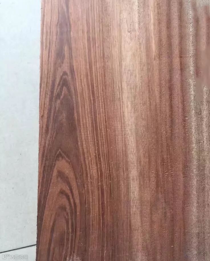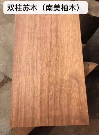 2、双柱苏木(俗称:南美柚木):木材散孔材;心材黄褐色至红褐色;木材光泽强,无特殊气味和滋味;纹理直略交错;气干密度0.75-0.79,心材耐腐抗蛀,木材中至重;强度高;可用于室内装修,家具,户外木工程,造船等。