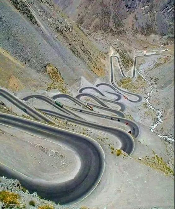 山腰上蜿蜒盘旋的道路。