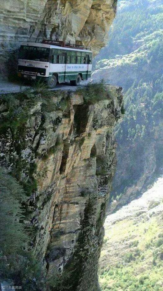 崎岖的悬崖山路,道路宽度只能容下一辆车。这样的路你敢把生命交给司机吗?