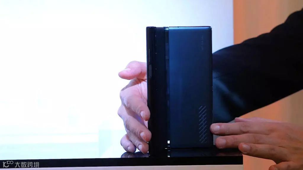 同时,手机右侧后方有一块凸起,此处设计在展开作为平板使用时,似乎更有利于单手持握。