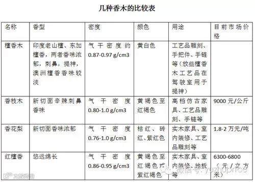 黄花梨为什么这么贵还受到人们的追捧?说它材质好,纹理漂亮,可同产于越南的细叶黄连木(市场上称紫油木、广西黄花梨)的密度比黄花梨还大,部分纹理比黄花梨更丰富,而它的价格还不到黄花梨的百分之一呢。其原因除了它没有被收录进国标红木外,很重要的一个原因是它没有像黄花梨一样令人赏心的香沁。可见木材的香味在它的价值评判中也起到举足轻重的作用。