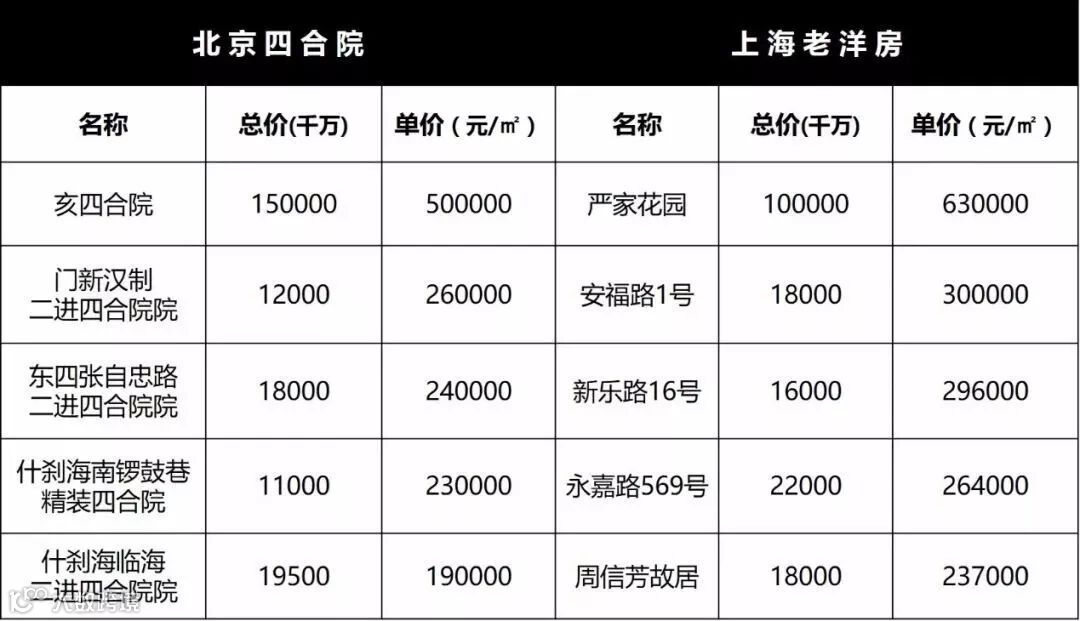 最后,奉上部分市场可售天价四合院和老洋房价格表,究竟谁才是你心中的豪宅之王!