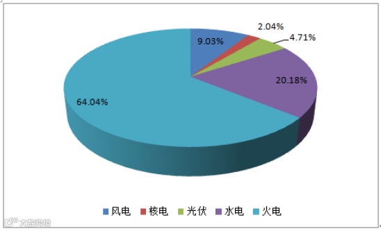 我国的电力结构由火电、水电、核电、风电、光伏电以及其他组成,截止至2018年1月,我国火电占比64.04%,水电占比20.18%,风电占比9.03%,光伏发电占比4.71%,核电占比2.04%。
