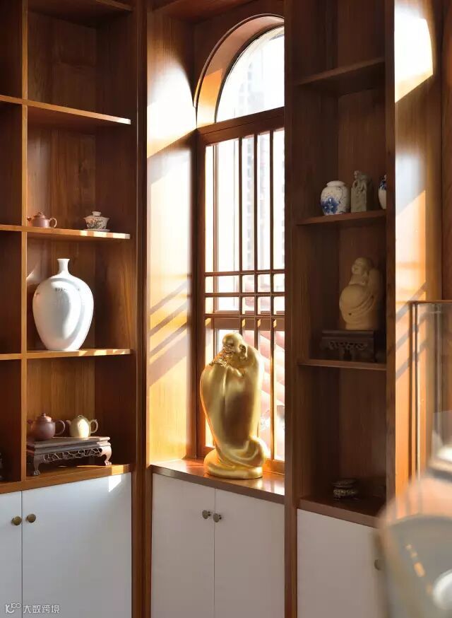 中式元素与现代材质的巧妙兼柔,窗棂、布艺相互辉映,再现了移步变景的精妙小品。