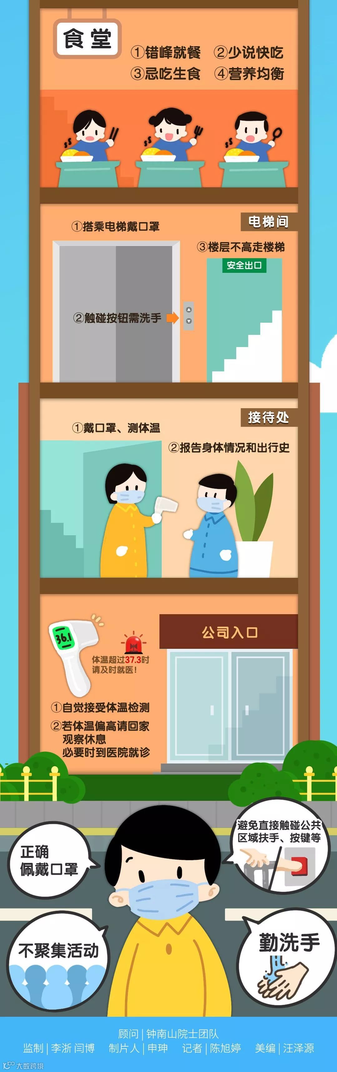 导读:近期,全国多地已陆续复工钟南山院士团队联合央视新闻推出复工后防护提示在办公室如何做好防护?食堂就餐要注意哪些