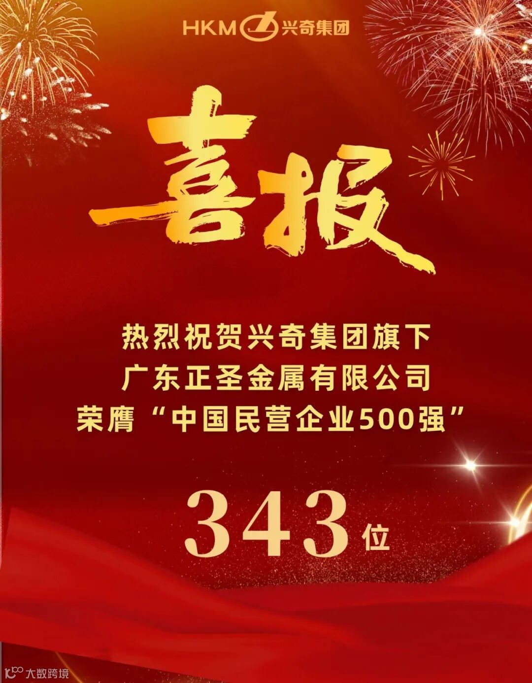 喜报|热烈祝贺兴奇集团旗下广东正圣金属有限公司荣膺“中国民营企业500强”及“中国服务业民营企业100强”
