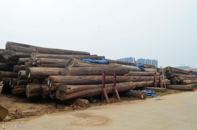这里的缅甸柚木大贸材,直径超级大,出材率特别高,油性特别足。请恕我直言,缅甸柚木大贸材绝对是这个世界最好的木材之一。