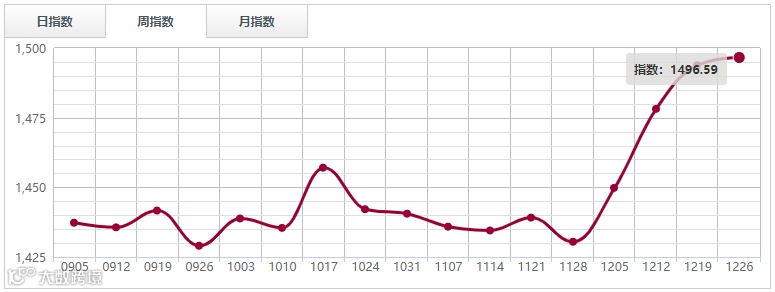 而进口针叶材原木市场方面,随着年末冲刺行情的减弱,本周四川大西南进口针叶材原木也开始震荡下滑,代表材种樟子松本周销量环比下滑了2.64%,成交均价为1640元/立方米。白松由于供需较强紧俏,本周成交量还是有3.22%的增加,成交均价为1670元/立方米。对于接下来行情,市场出现连续调整已是大概率事件,但商家们普遍认为,此时的调整更多是良性的回踩,主要还是此前连续快速上行的回落需求以及海外市场大幅波动的影响,当然也有国内市场消息面的抑制。随着稳增长的政策托底,不少商家还是看好来年一季度行情,我们拭目以待。
