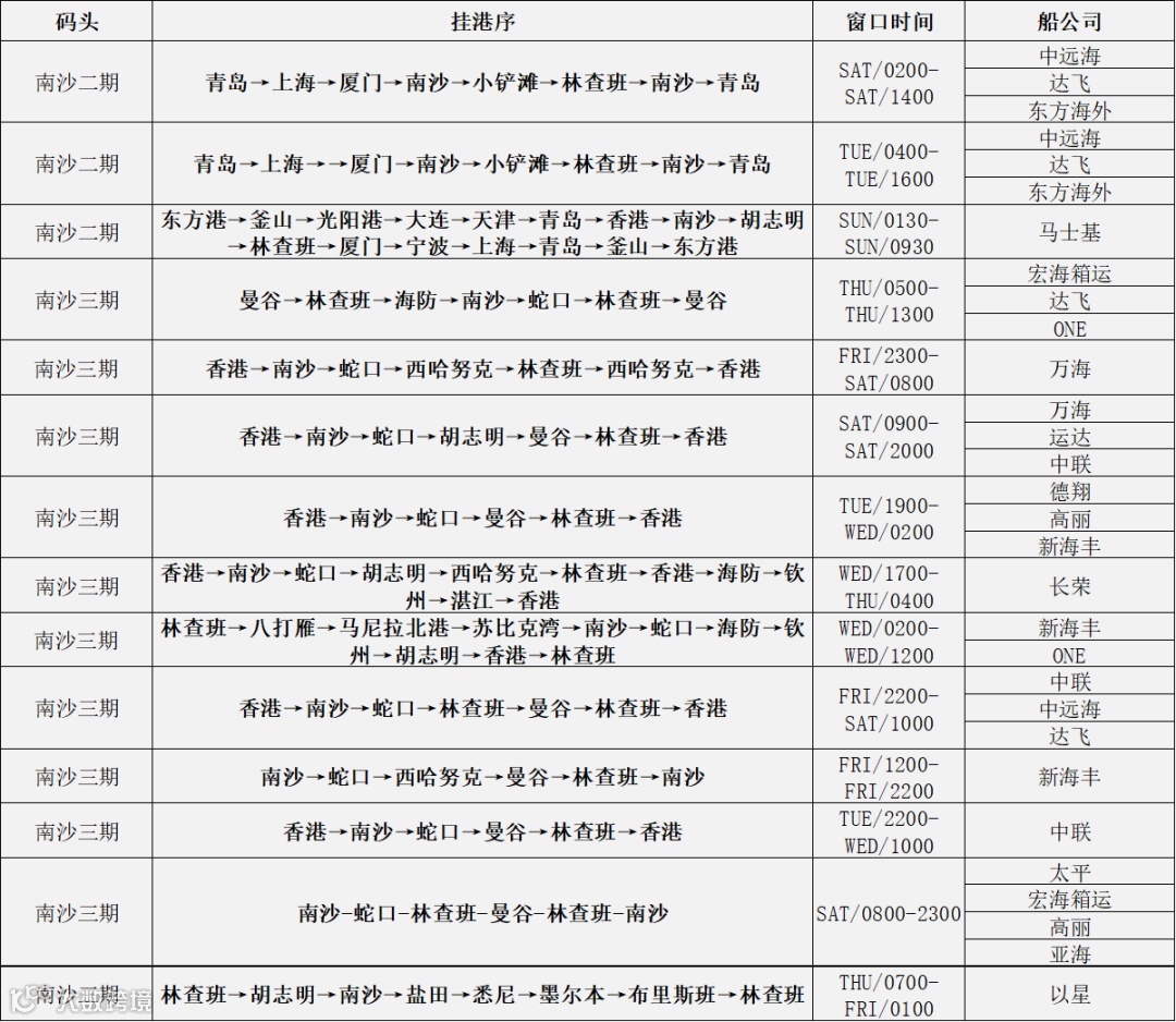 在众多国际航线中,东南亚航线无疑是南沙港的最强项,主要来源于泰国的橡胶木也因此享受到这一“红利”。据中国木材价格指数网、木材王国调查了解,槟城、林查班、宋卡、曼谷是泰国橡胶木出口的主要起运港,尤其是槟城和林查班占据泰国橡胶木七八成的出口量。而在这两个起运港,南沙港均有与之匹配的丰富航线。据不完全统计,目前南沙港林查班航线有14条,槟城航线5条。丰富的航线、相对充沛的仓位,极大地降低了木材商家订舱难的问题。更甚的是,林查班航线4天到港的高时效优势,为木材商家在不确定市场环境中赢取先机提供了坚实保障。