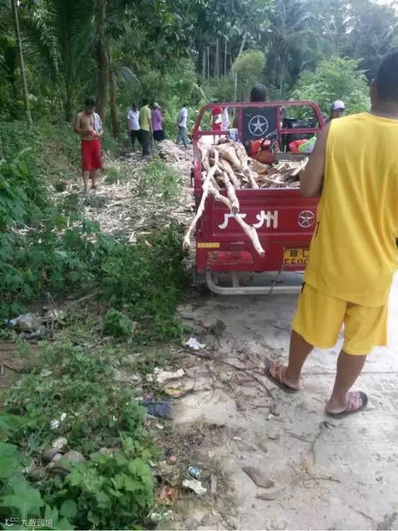 当时黎族村民组团上山找料,天天都有人下山。有时收料人就在山脚下等着下山,一辆辆金鹿牌拖拉机,拉着一车车人回来。直到现在这这种场景已经不复存在,人们不断的挖掘寻找,整片大山都找个遍。
