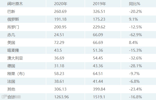 导读:2020年中国进口阔叶原木主要货源国如下:您若有融资需求 请点击阅读原文了解更多……