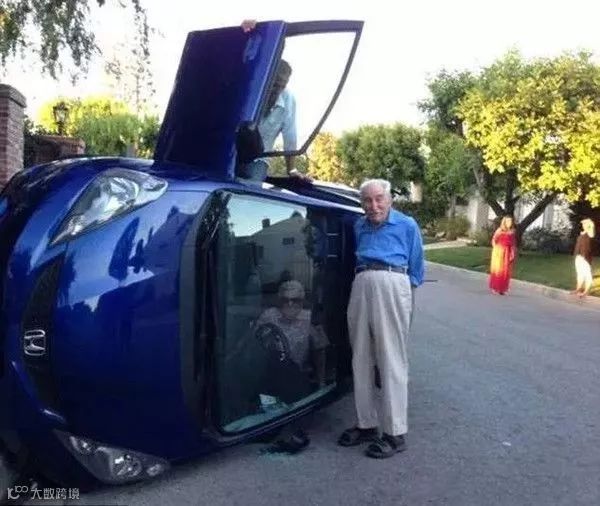 当大家准备把这老两口救出来的时候,坐在副驾驶位置的老太太却说:“不,我要拍张照。好不容易翻次车,必须得纪念一下。”