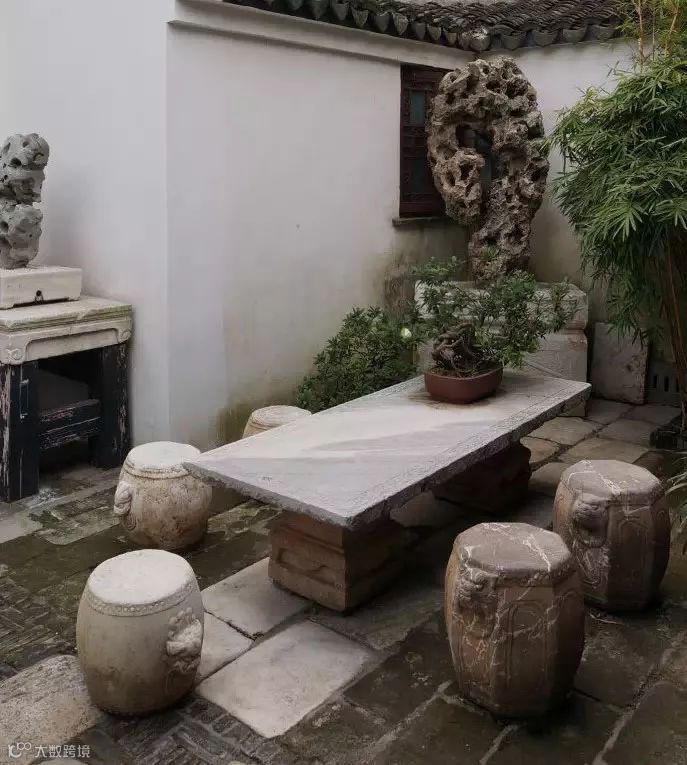 收集石器这种爱好,其实包含了对拥有岁月感的老物件那种说不出的情怀,在院子里摆上些石器,也为庭院增添几分古雅沉稳的韵味,石缸养莲植蒲,石磨铺地做水景等等,令人赏心悦目。