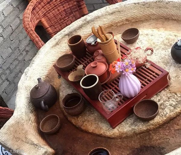 古朴的老石器其实也富含了很多吉祥的寓意,如石磨寓意‘好事多磨’,告诉人们要经得起生活的磨难才能有所收获;石缸各类雕刻吉祥图案表达了人们平安是福的心理愿望……每天在院子里看看这些石器,感觉内心就很平静,闲来就在石桌上喝喝茶,陶瓷的细腻加上石器的厚重感,茶水仿佛又将这种感觉带入口中,让人细细品味,怀旧思索。