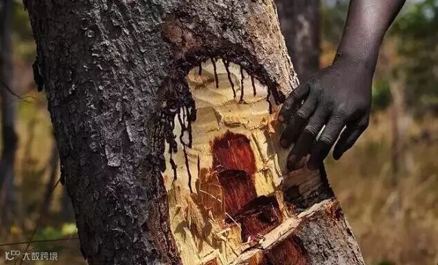 血檀被砍之后树身会流出血一样鲜红的汁液。血檀零星分布在非洲中南部特有的米扬博林地中(Miombo woodland),其中包括刚果(金)东南部一片偏远的原始森林。在这里,血檀是唯一一种被中国人交易的树种。在此之前,血檀已经在刚果(金)的邻国赞比亚遭到了几近灭绝地非法砍伐和贸易。
