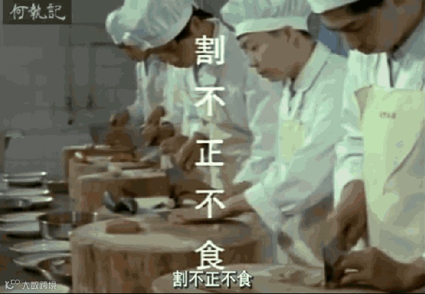 引用孔子的“割不正不食”,展现多重刀法。