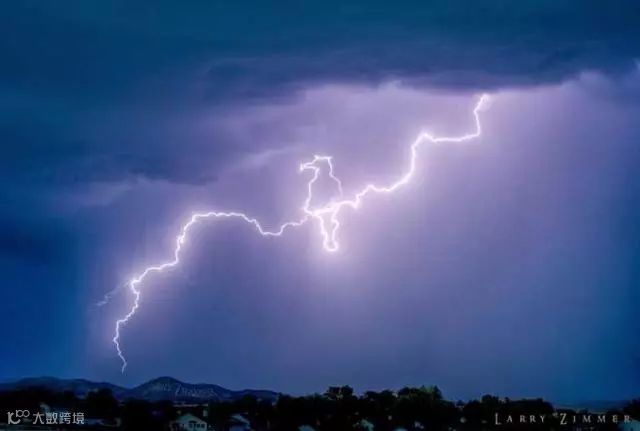 闪电的形状就像一只海马,又像一只落在电线上的鸟