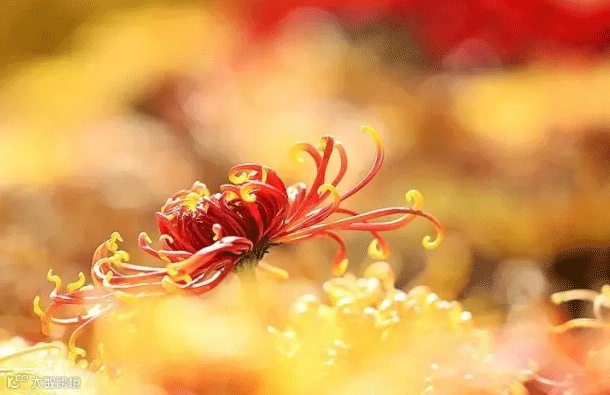 菊花盛开,清香四溢。其瓣如丝,如爪。其色或黄、或白、或赭、或红。种类繁多。性耐寒,严霜既降,百花零落,惟菊独盛。