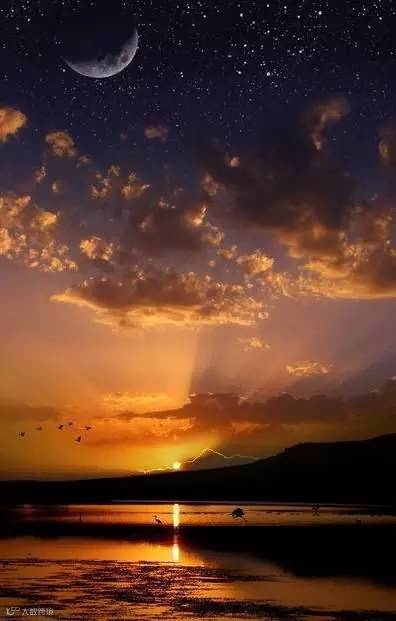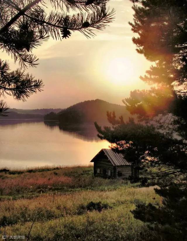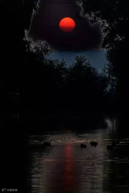 浮云散,落日红。霞光满天,凉风徐来,蝉鸣树间。
