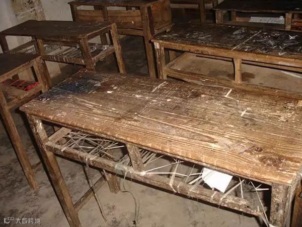 我们会在破旧的课桌下缠绕上绳子