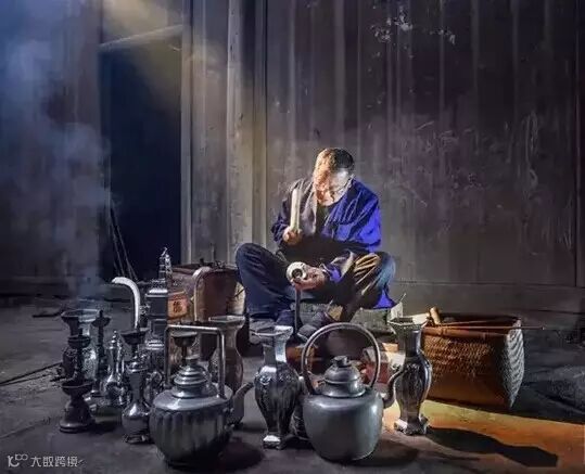 边走边喊“打锡壶喽!打锡壶喽!”的场景,
