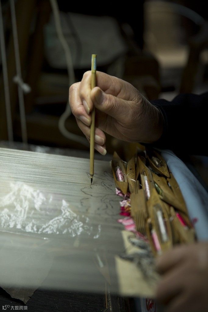 ▲缂丝先画好草图,这需要有设计和艺术史的根基