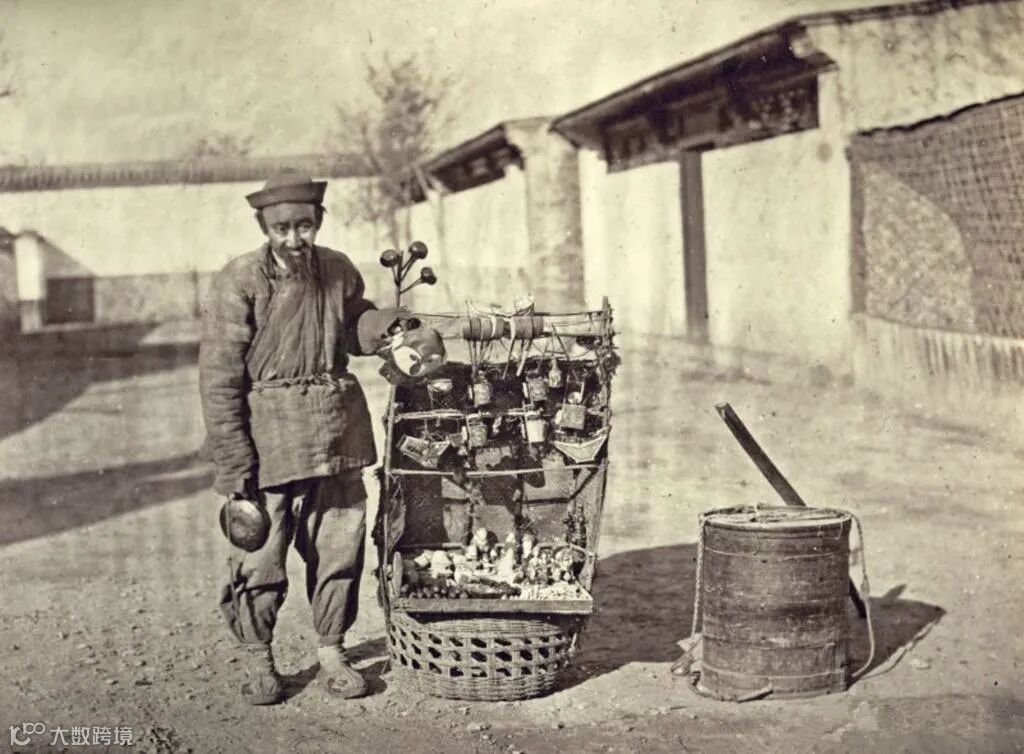 背着各种杂货的货郎,有实用器具和小玩具