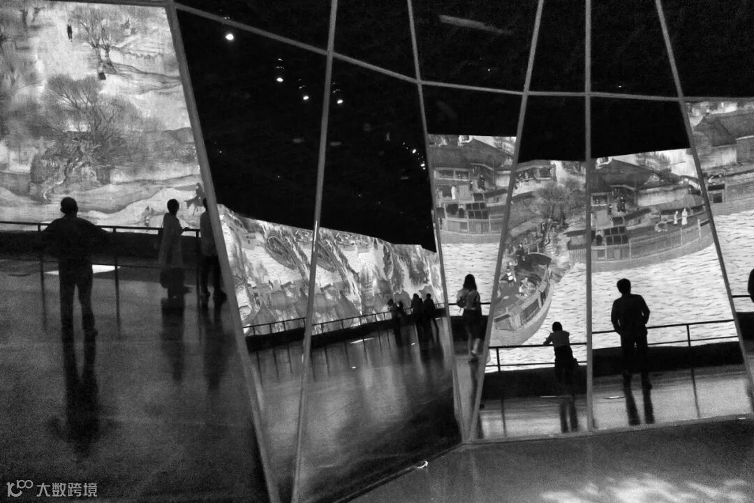 位于中国馆49米层的多媒体清明上河图,给这幅北宋名画添加了动态和昼夜效果。