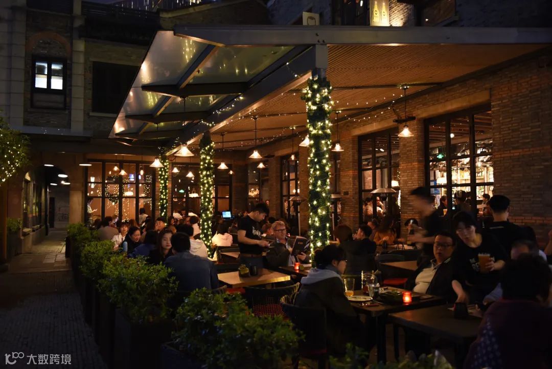 走进去,是满满的网红店,咖啡厅,露天酒吧,各国美食的高级料理……