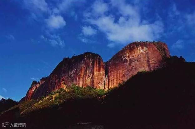 可以看见三座异形的山峰,