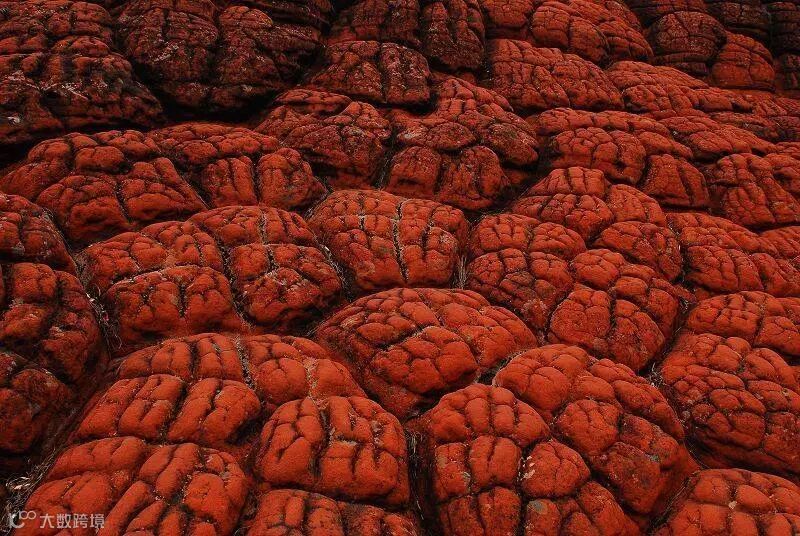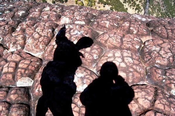 山坡上的巨石表面呈现龟裂状,