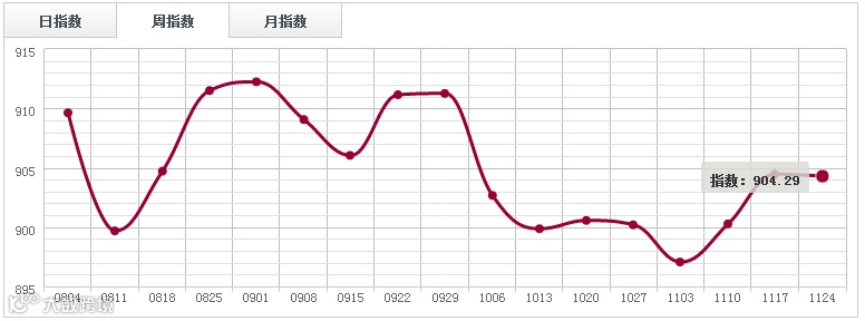 本周人造板市场走出了微幅整理行情,周指数报904.29点,周环比跌0.02%,全周销量环比增加0.21%,交易额下跌0.76%。各大市场中,四川大西南本周价格指数下跌1.22%,跌幅居首。上海福人价格指数跌0.1%;山东临沂周指数涨0.41%,广东鱼珠周指数涨0.37%。