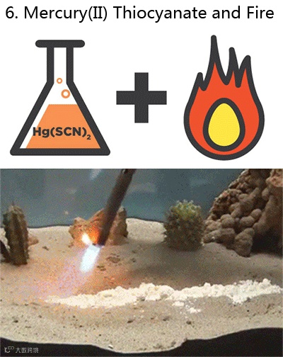 法老之蛇”化学反应燃烧硫氰化汞,因为其受热后体积会迅速膨胀,所以就长出了触手~不过,硫氰化汞本身和其化学反应物都是有毒的,所以别在自己家尝试。
