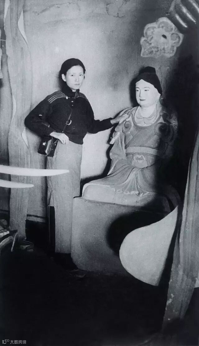 1937年林徽因与佛殿主宁公遇塑像的经典合影