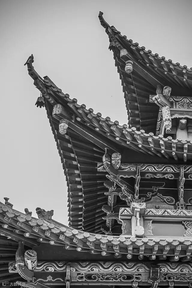 古寺面对苍劲绵延的山脊,竟有一种“千山鸟飞绝,万径人踪灭”的孤寂。瑟瑟山风中,仅闻屋檐下的铜铃声,声声入耳。