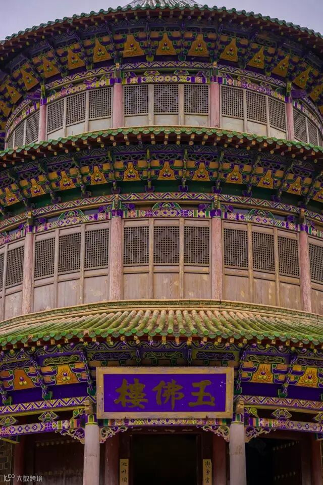 玉佛楼,典型的“重檐三滴水,圆形攒尖顶”古建筑型制,盛行于明清,然而极少出现在寺庙建筑中,而一部分嵌于山崖之中的情况,应是独一无二。