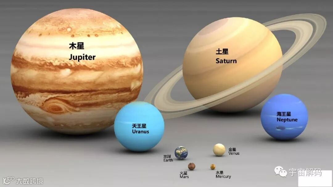 太阳系有八大行星,由内向外依次是水星、金星、地球、火星、木星、土星、天王星、海王星;如果按大小排列是:木星(直径142,984公里)、土星(直径120,536公里)、天王星(直径51,118公里)、海王星(直径49,528公里)、地球(直径12,756公里)、金星(直径12,104公里)、火星(直径6,794公里)、水星(直径4,878公里)。木星是太阳系中最大的行星,它的质量是其它七个行星质量总和的2.5倍。