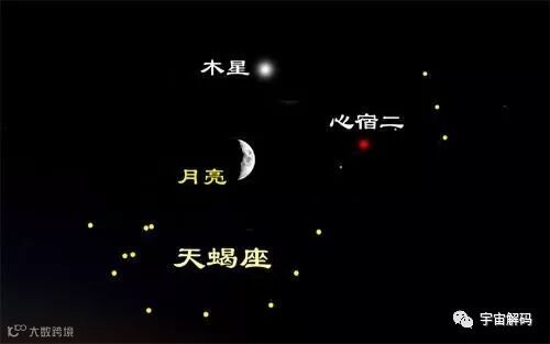 心大星就是大名鼎鼎的心宿二,天蝎座α星,中国古代又称大火,用来确定季节。心宿二距离太阳系600光年,是M1I型红超巨星,光度为太阳的6000倍,是夜空中第15亮星。心宿二的直径是太阳的700倍,约9.74亿公里,比火星的轨道还大。