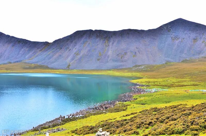 思金拉措相比羊湖的名气自然是相差甚远,但这也造就了它安静惬意的环境,没有人流,你可以在这里堆上一个玛尼堆,在湖边挂经幡,送上自己最美好的祝福。
