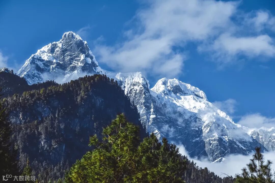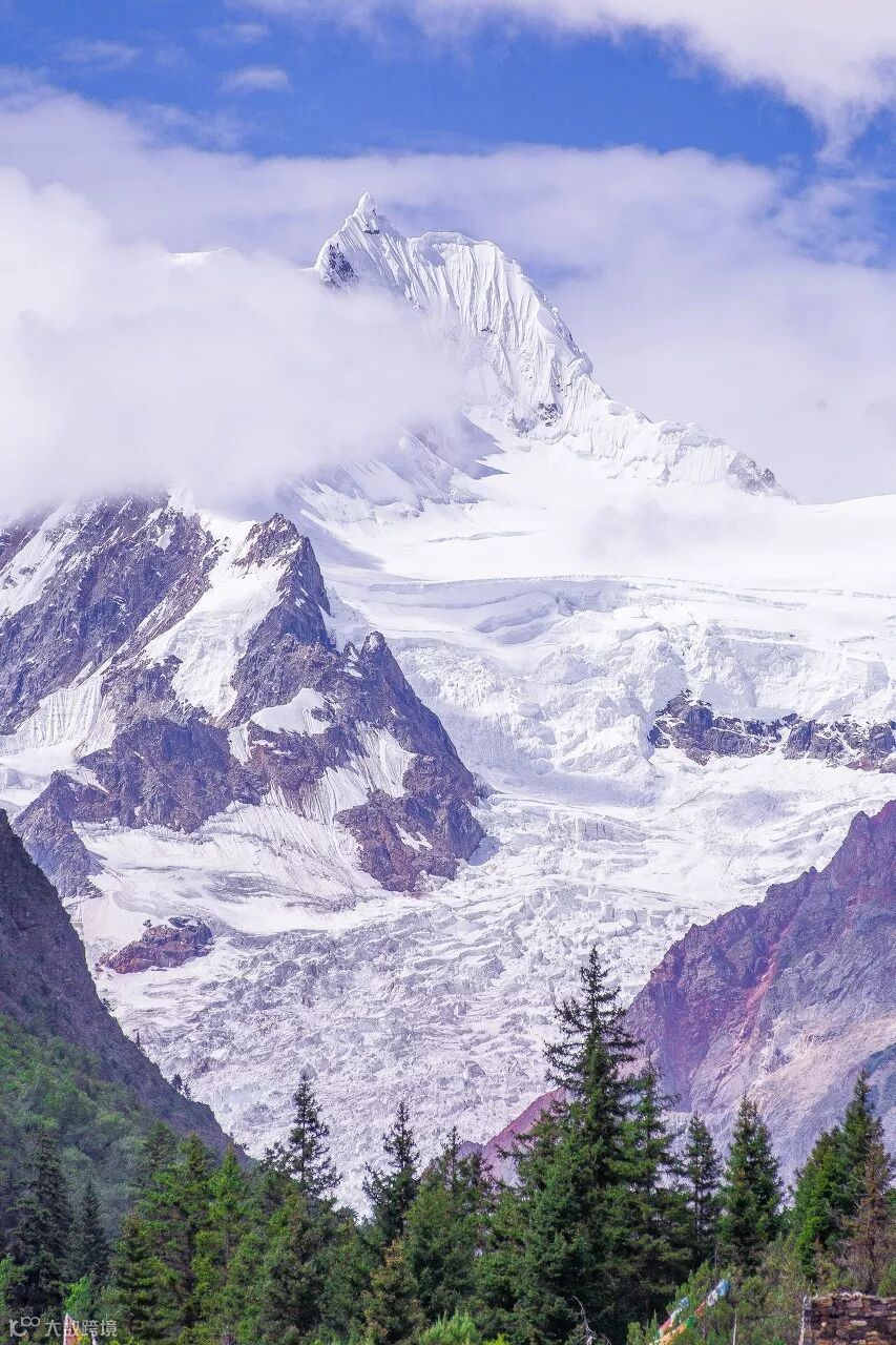 这里山顶冰川高耸、形状俏丽,山间常有云雾缭绕,而山下则是植被茂密的西藏江南,景色优美。