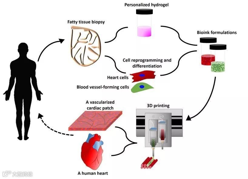 分离出的细胞随后与特制的打印材料混合到一起,打印出适合患者的心脏组织,不会产生免疫排斥反应。