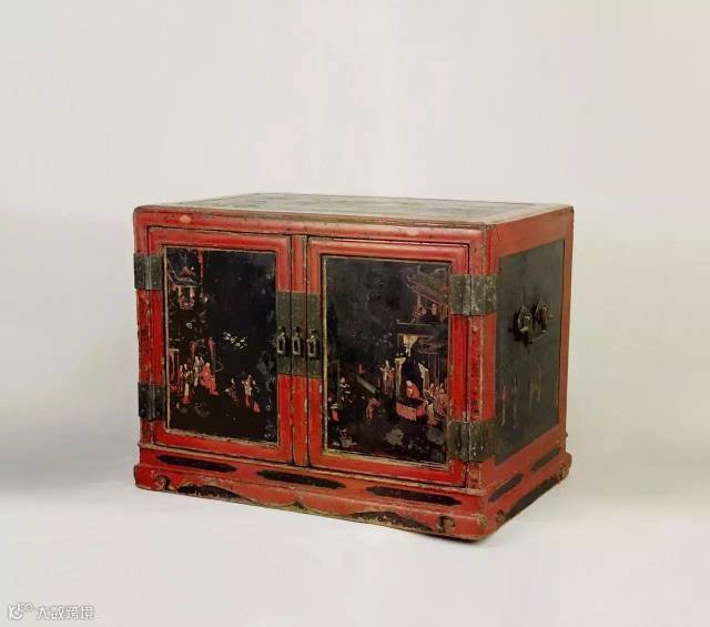 明天启 朱黑漆彩绘描金金瓶梅人物纹箱座书橱